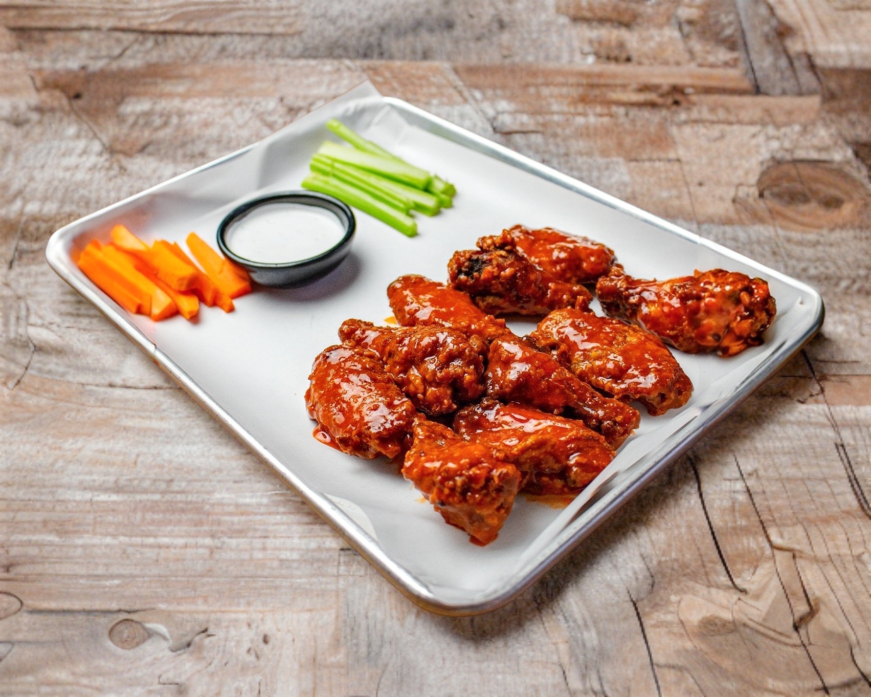 Mezcla de quesos, salsa pomodoro, boneless bañados en salsa a elegir y aderezo ranch.