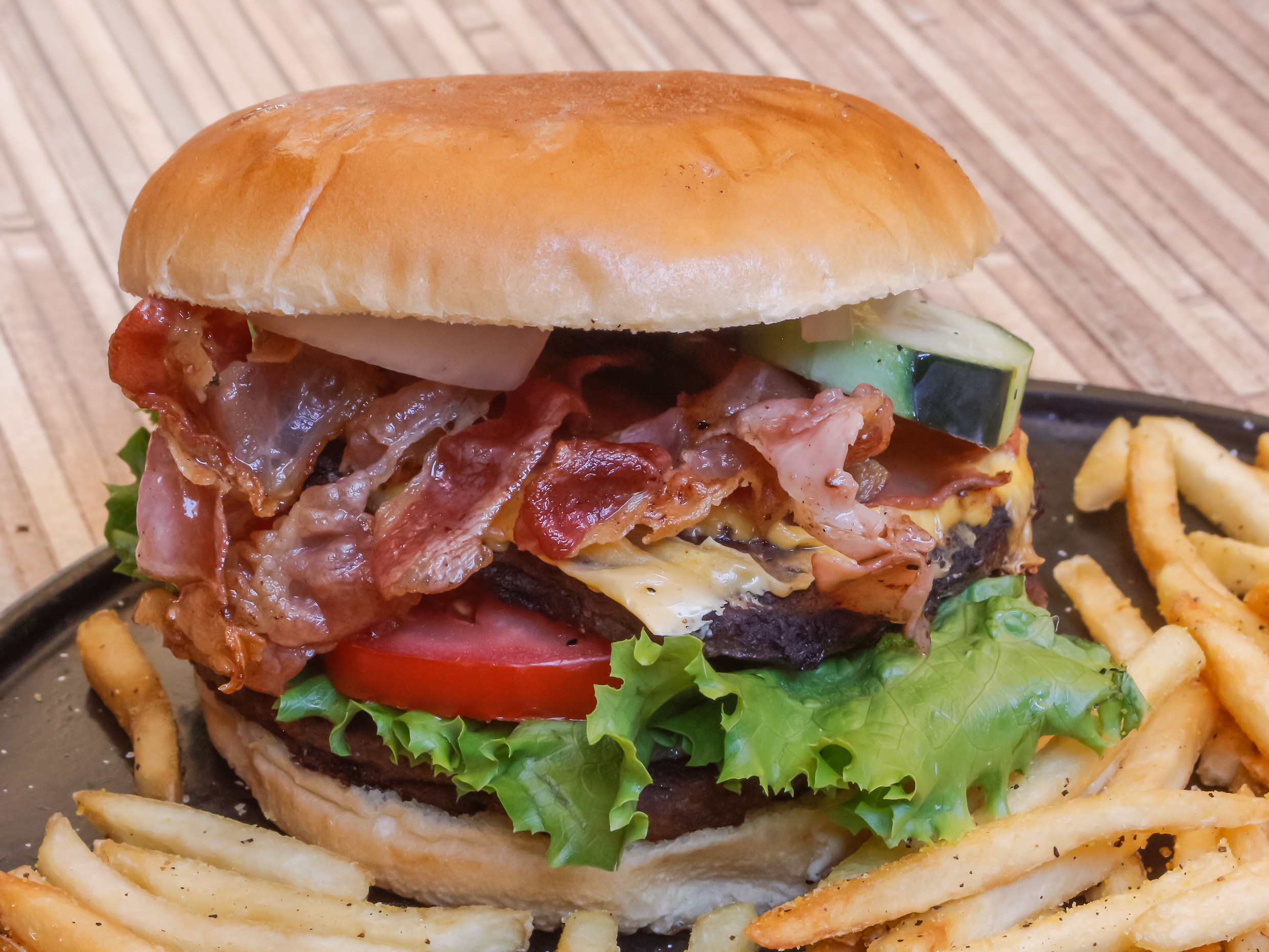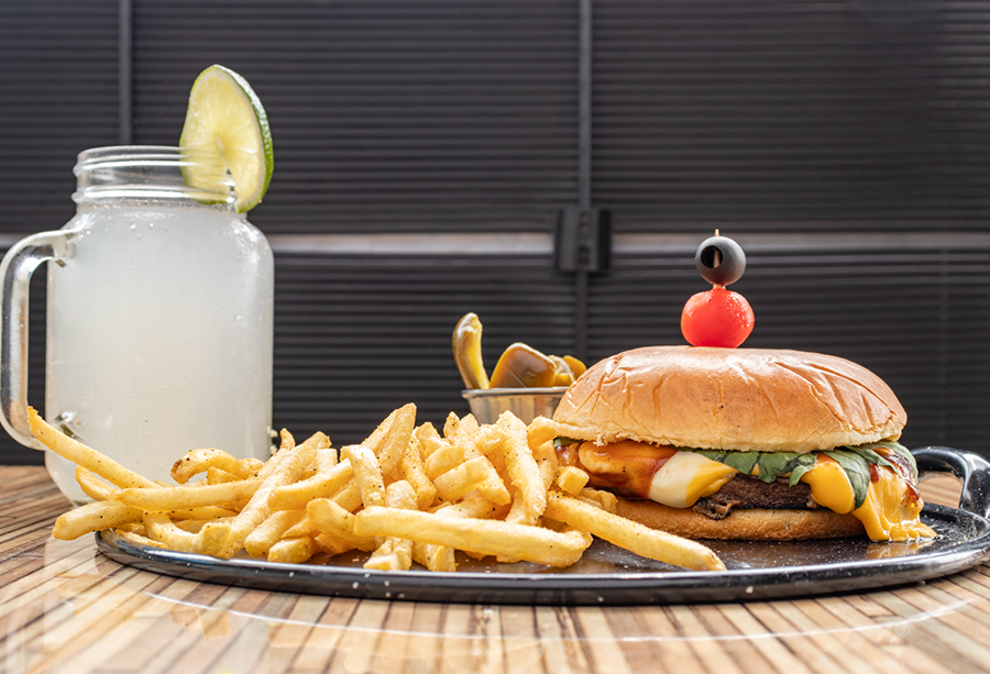 Carne de res a la plancha, queso y salsa a elegir, vegetales frescos y pan estilo brioche.