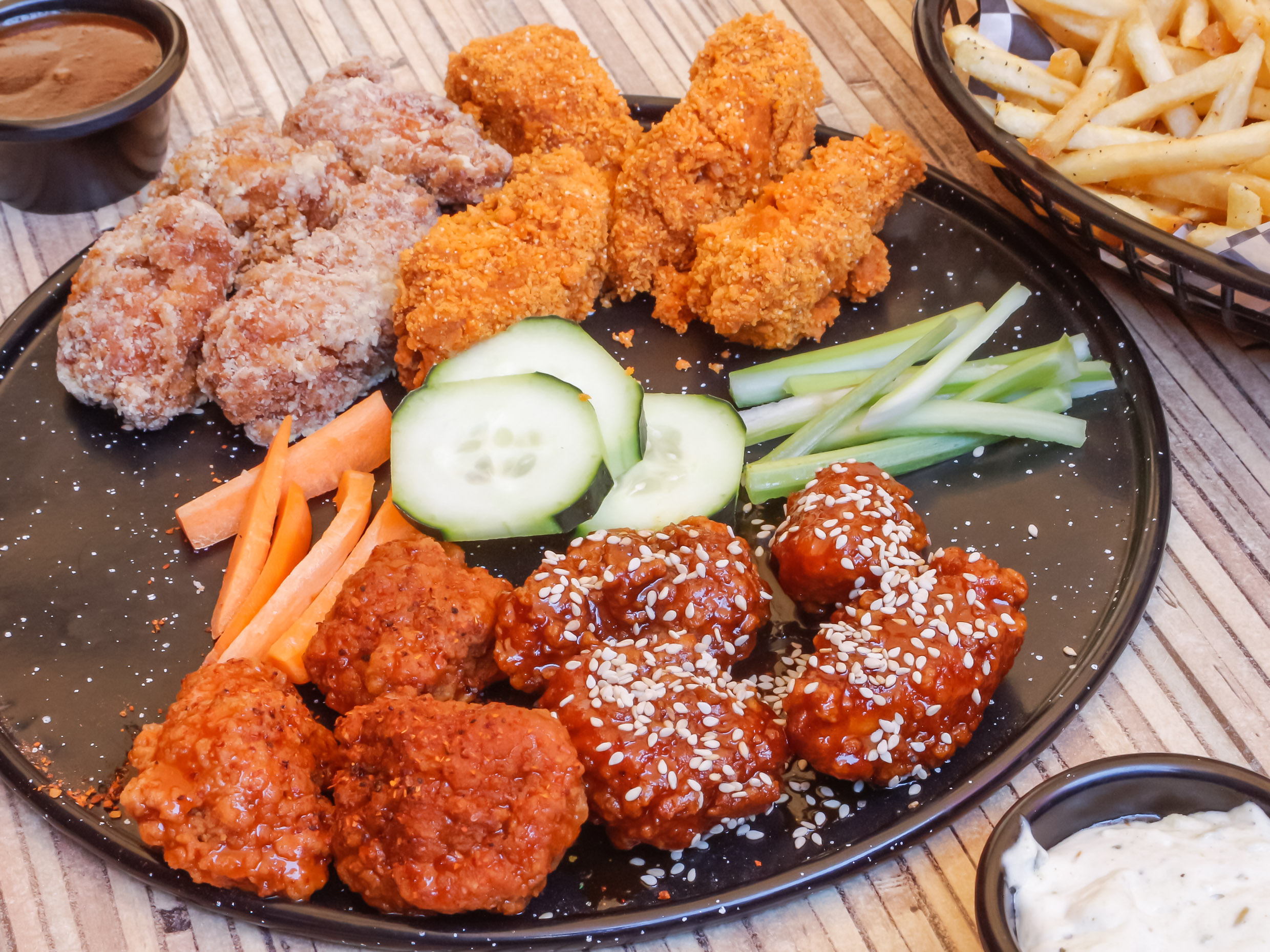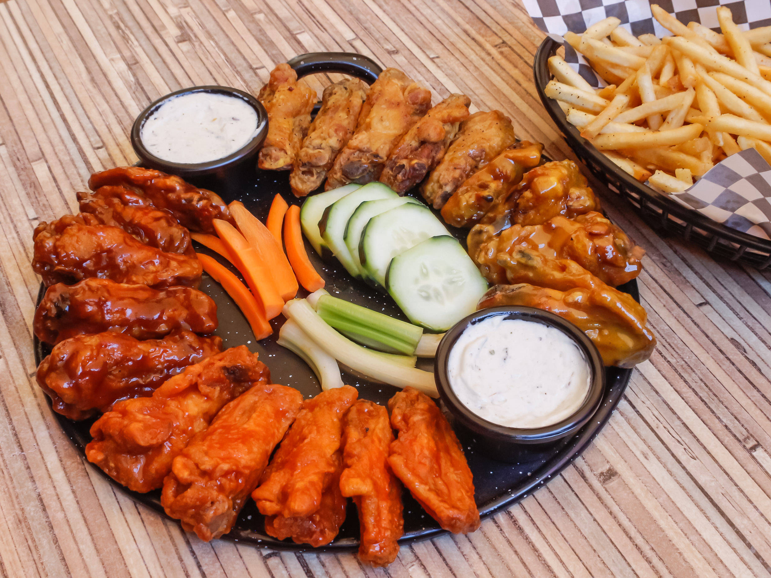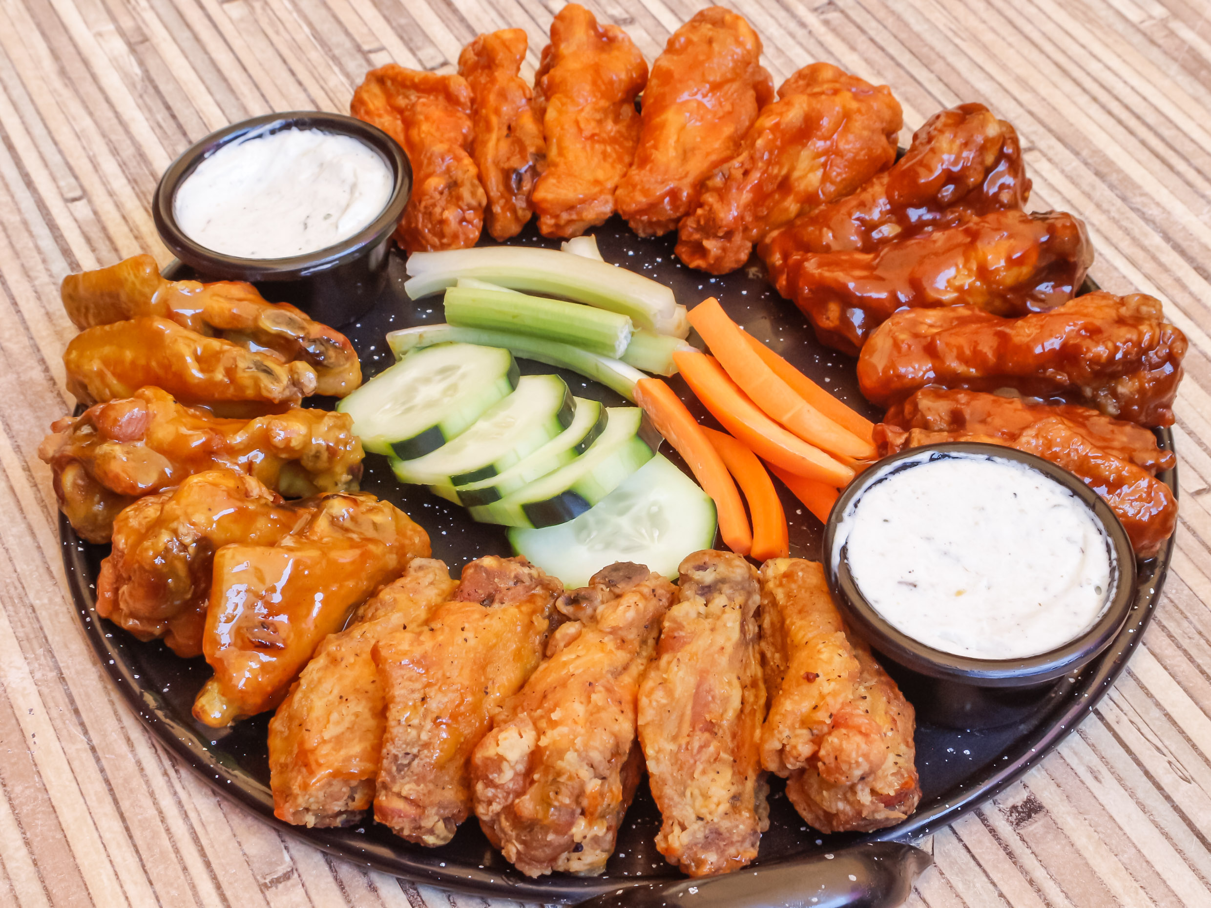 Aprox. 8-10pzas acompañadas de vegetales frescos y aderezo tipo Ranch (2oz).