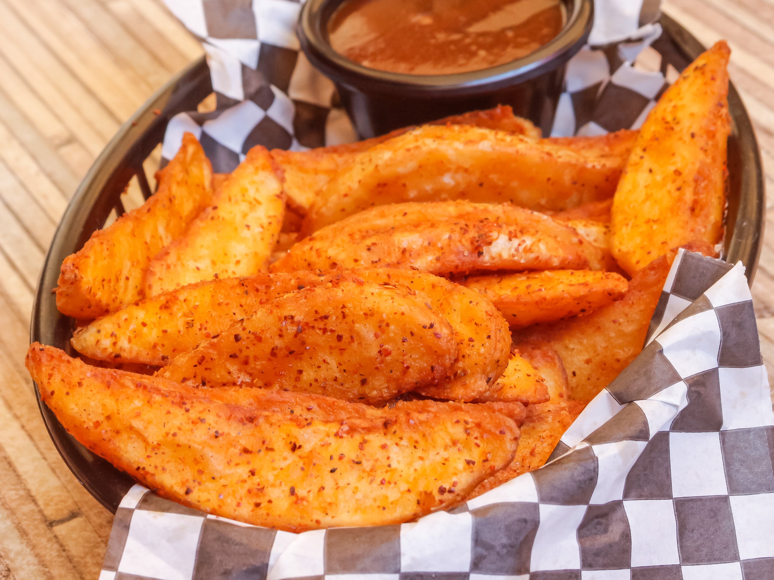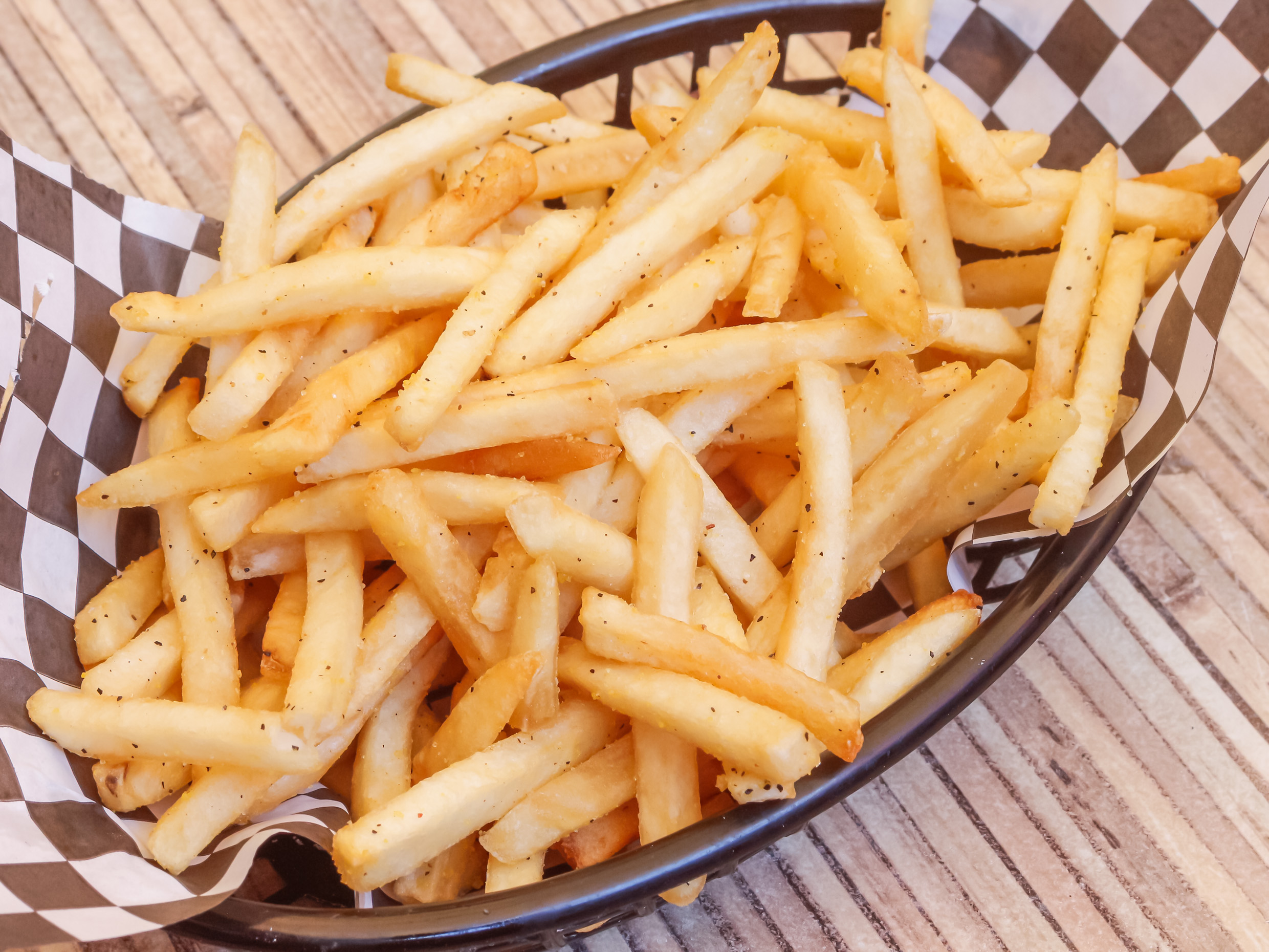 Deliciosas papas fritas a la perfección sazonadas con polvo lemon pepper (incluyen catsup y porción de queso).
