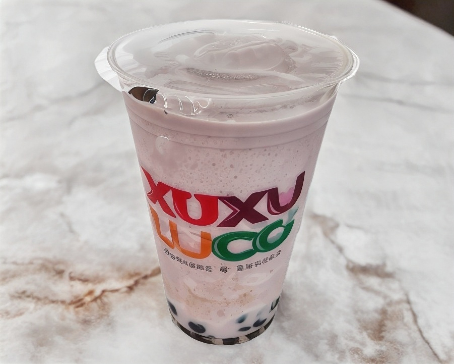 Bebida sabor taro con perlas de tapioca.