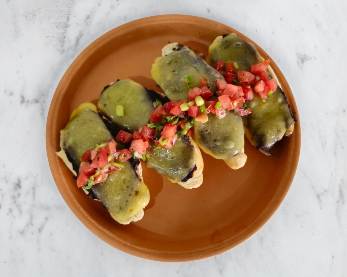 Bolillitos caseros con queso crema, frijoles refritos, queso gratinado acompañados de pico de gallo. (4 piezas)