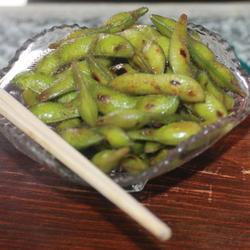 Frijol de soya asado en vaina. Bañados en soya especial.