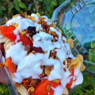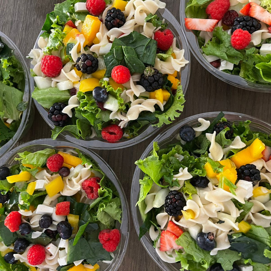 mezcla de frutas recien partidas con los mejores toppings de tu elección