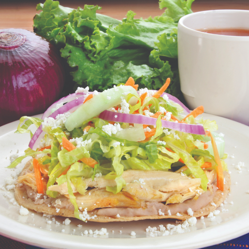 Servida con crujientes tortillas en tiras, queso chihuahua, aguacate, crema, y chipotle.