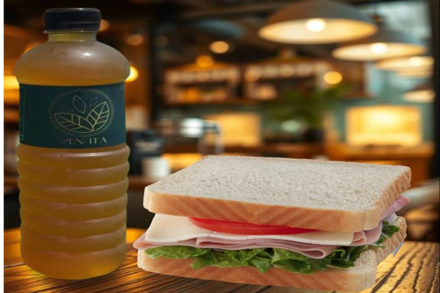 RIQUÍSIMO SÁNDWICH NATURAL, DE JAMÓN + TÉ DE JAZMÍN SIN CONSERVADORES (ADEREZO DE CILANTRO Y CHILE)