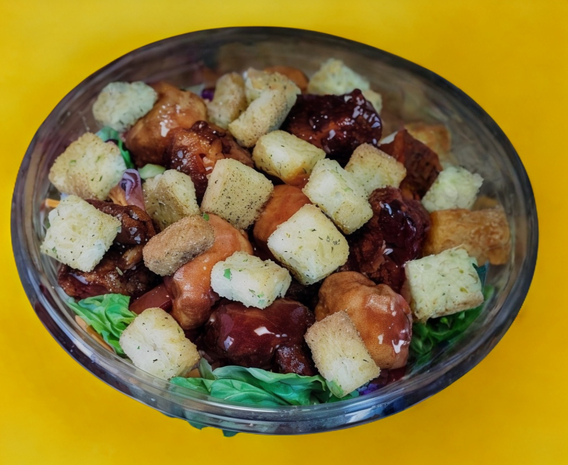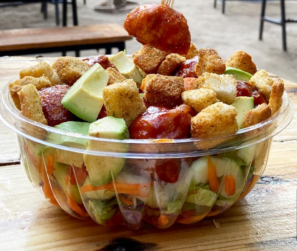 Mix de lechugas, tomate, aguacate, pepino, zanahoria, croutones y boneless con salsa a elección.