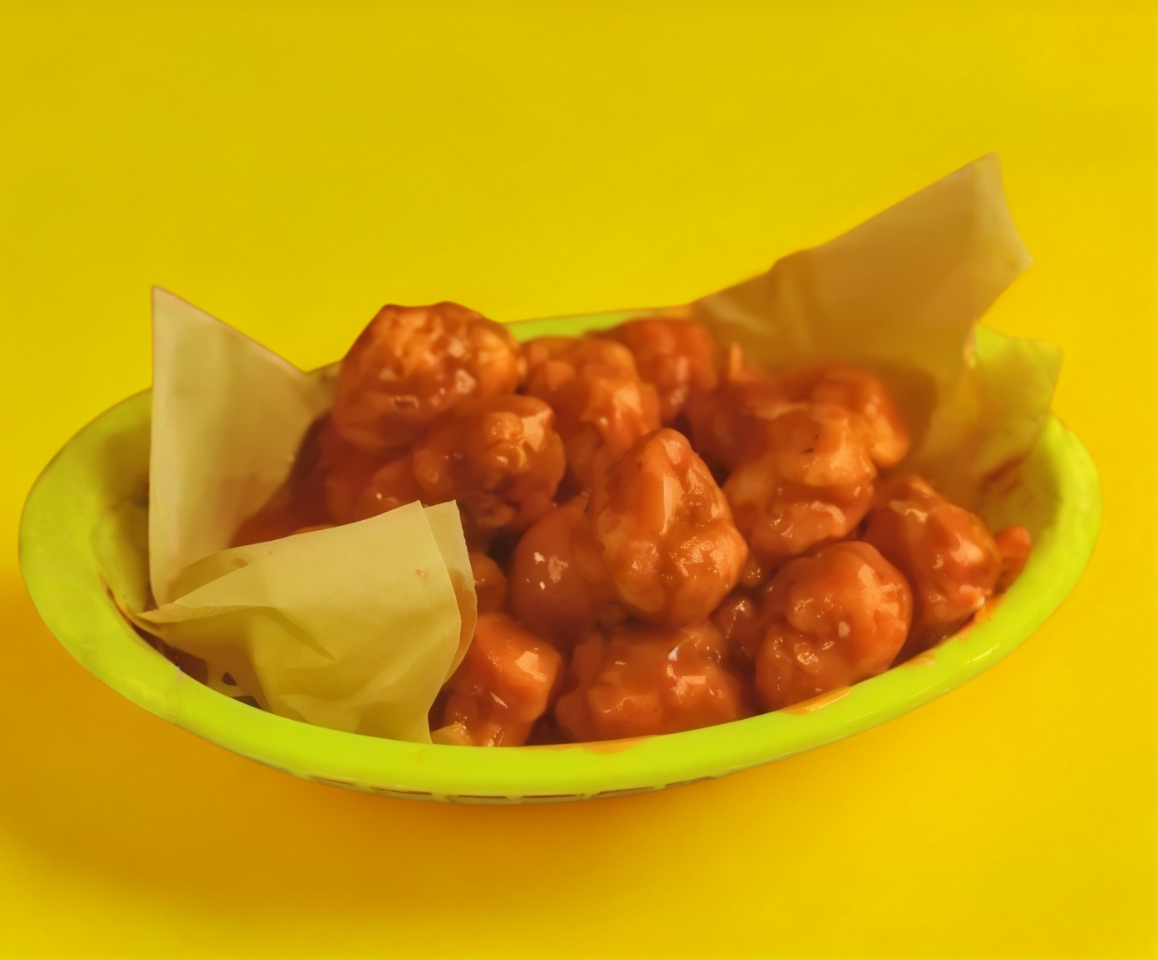 Boneless de pollo 130 g, bañados en salsa búfalo y aderezo ranch.