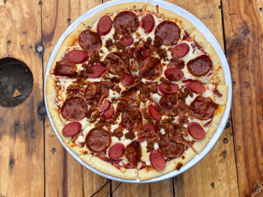 Salchicha, pepperoni, chorizo y tocino.