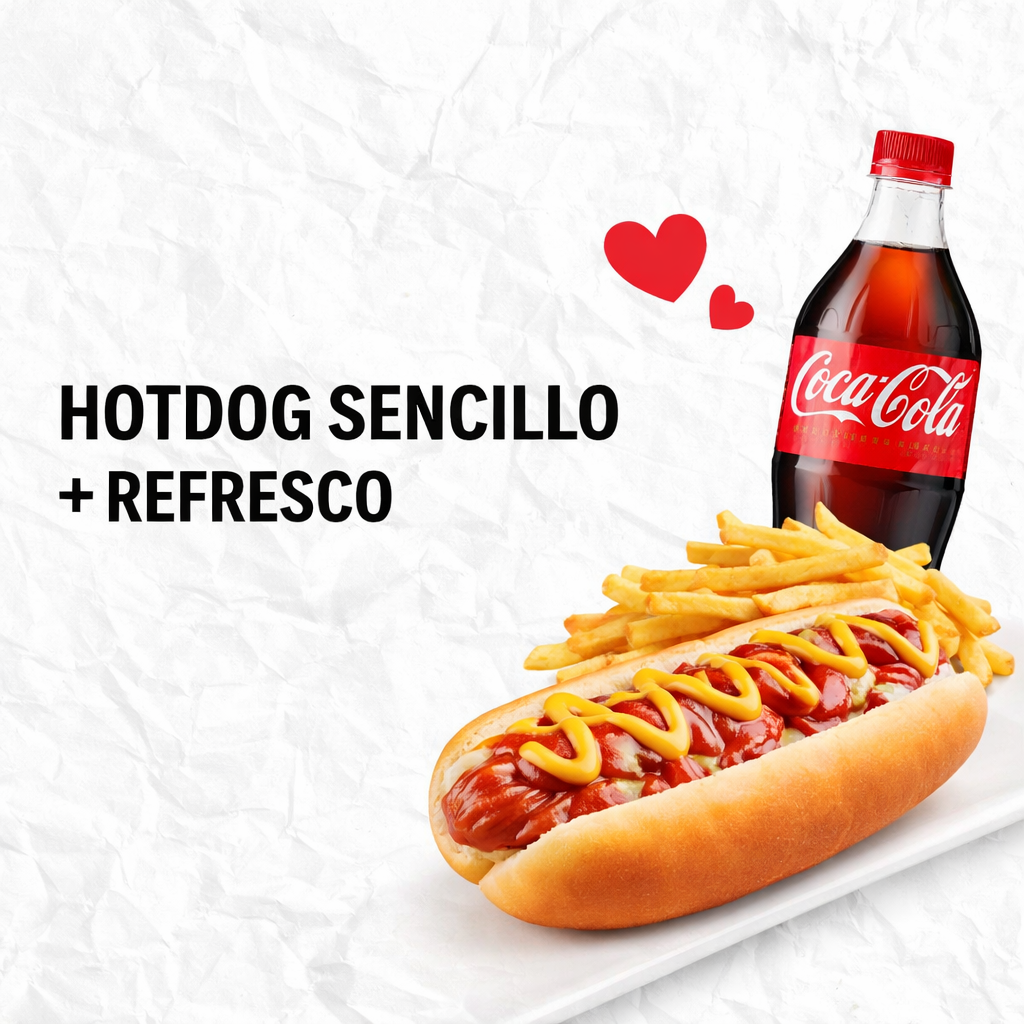 Hot Dog Sencillo + Coca Cola 600 ml.