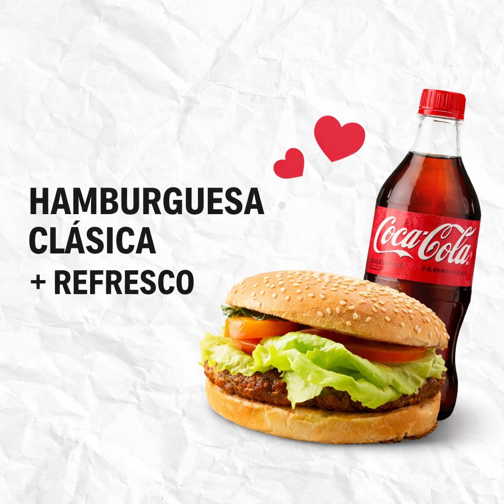 Hamburguesa Clásica + Coca Cola 600 ml.