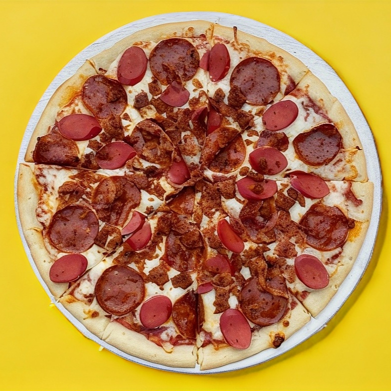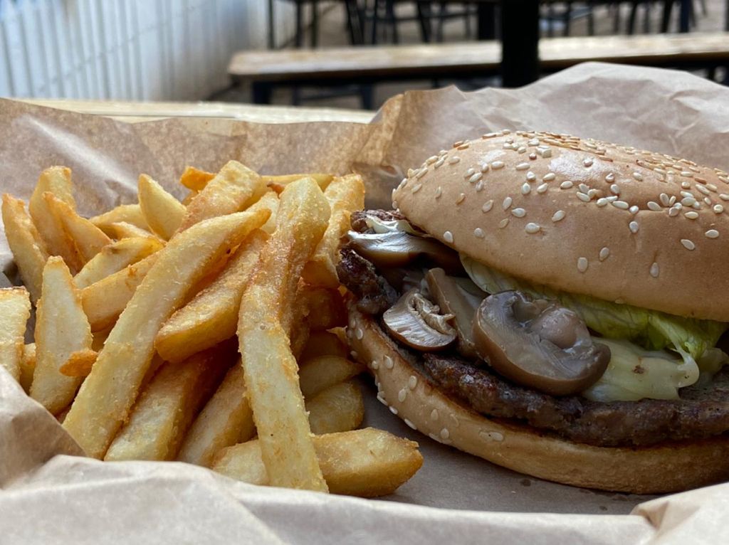 Carne molida de res especial, champiñones salteados, queso mozzarella, lechuga y cebolla caramelizada.