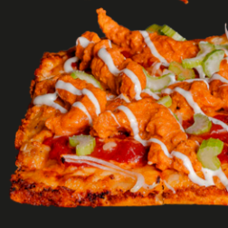 Topping de Boneless con salsa Buffalo y Aderezo Rach. Pizza cuadrada 20X35CM en 8 rebanadas.