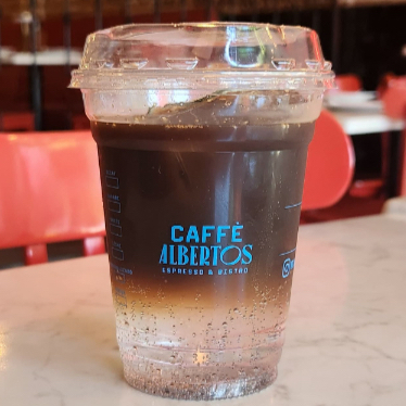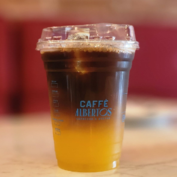 Espresso, hielos y jugo de naranja. Tamaño Gde 16oz.