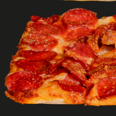 Pepperoni, Salchicha Italiana y Tocino. Pizza cuadrada 20X35CM en 8 rebanadas.