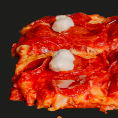 Una Pizza deliciosa de pepperoni con queso parmesano. Pizza cuadrada 20X35CM en 8 rebanadas.
