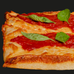 Quesos y Salsa de Tomate importados. Pizza cuadrada 20X35CM en 8 rebanadas.