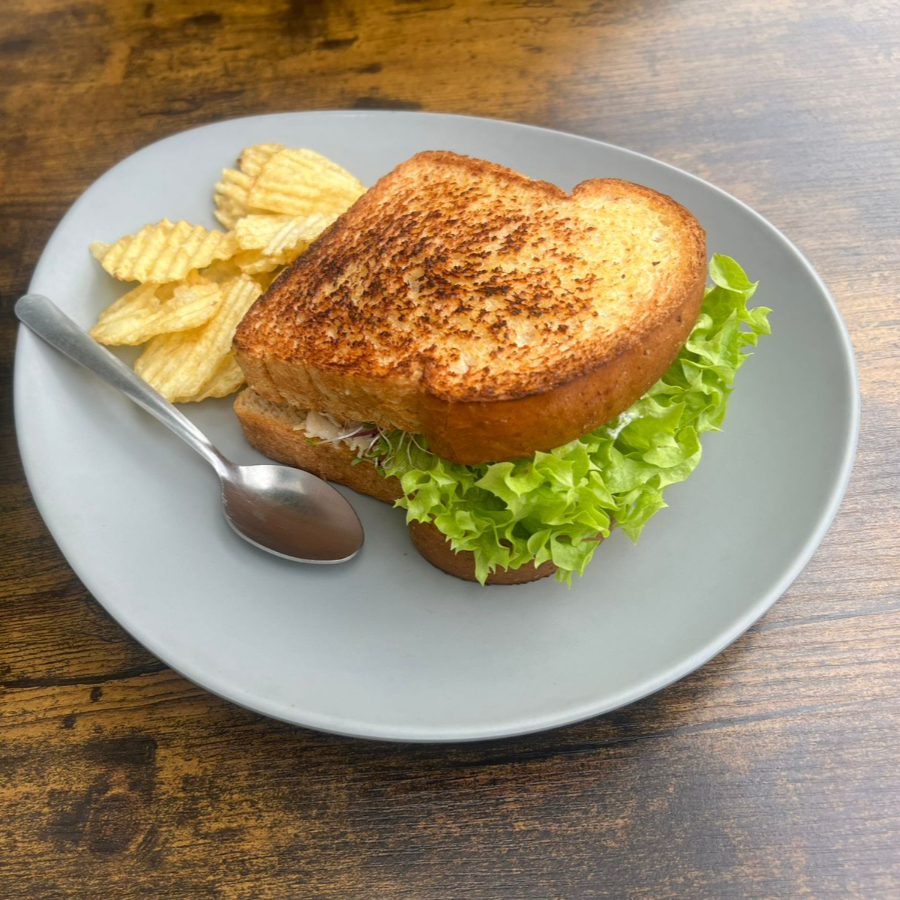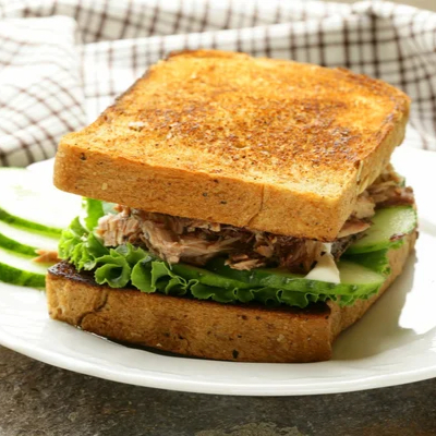 ANDWICH DORADO CALIENTE CON PAN INTEGRAL GRUESO, PREPARADO CON ATUN, MAYONESA , LECHUGA ITALIANA, TOMATE, AGUACATE, CEBOLLA Y GERMINADO DE ALFALFA. ACOMPAÑADO DE PAPAS FRITAS Y JALAPEÑOS.