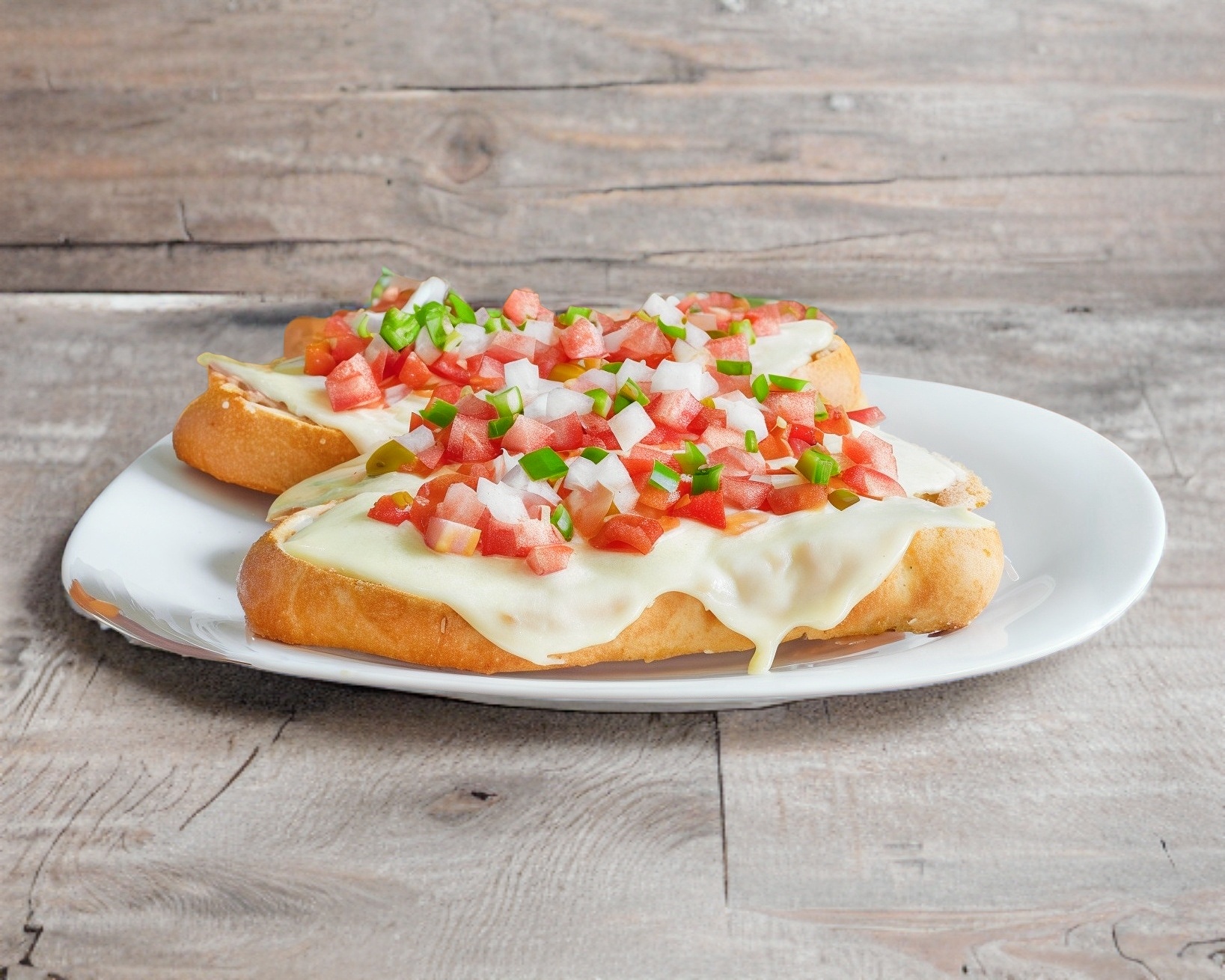 Con frijol, pico de gallo, gratinado y jalapeños.