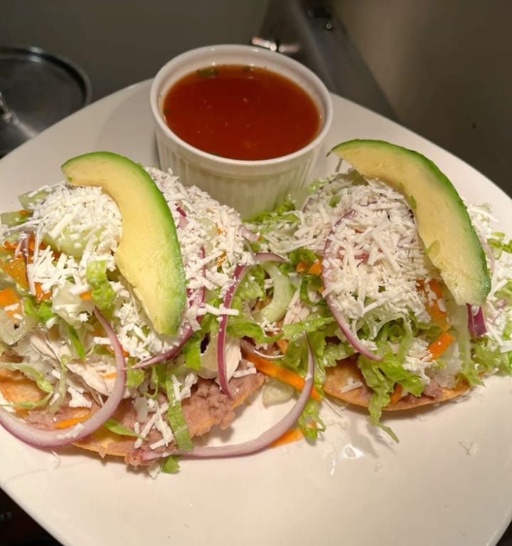 Incluye verdura, salsa, frijol y tortillas.