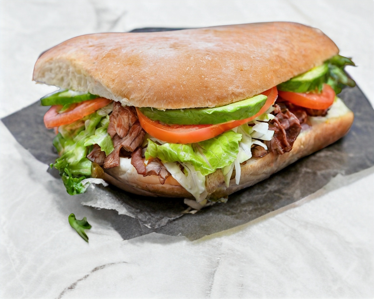 Deliciosa carne arrachera, queso americano, lechuga, cebolla, tomate y aguacate, acompañada con papas fritas.