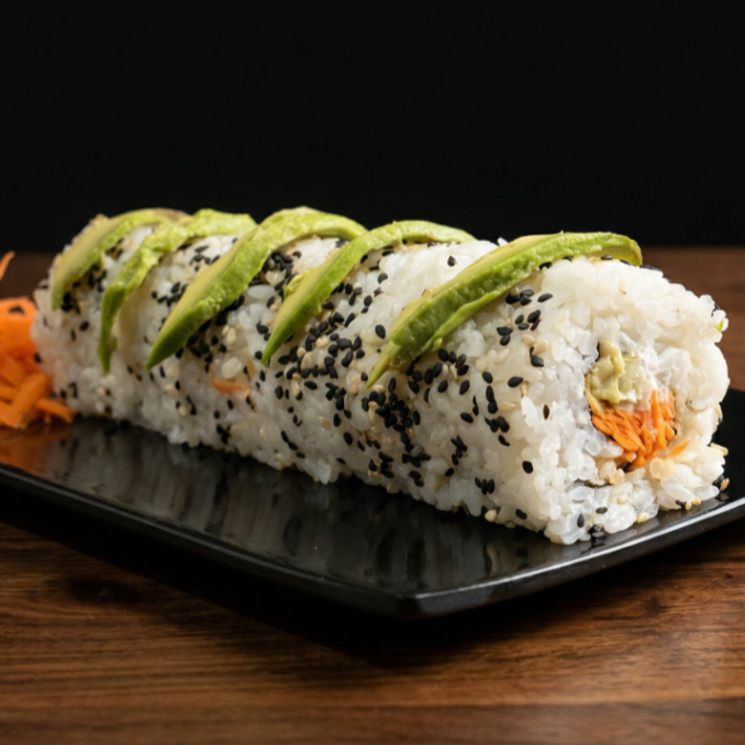 🥕🥑 Relleno de zanahoria fresca y cubierto con ajonjolí, coronado con suaves rebanadas de aguacate. 👉 Ligero, crujiente y 100% veggie power.
