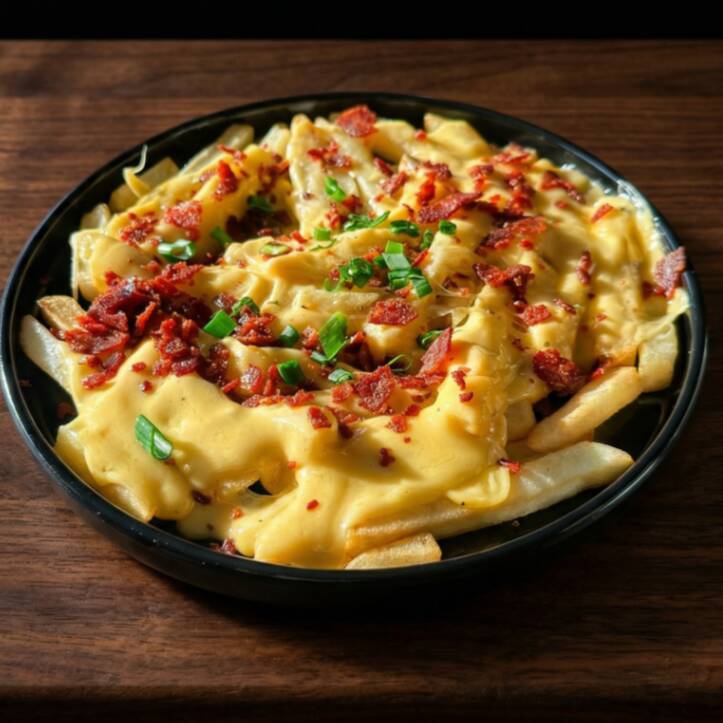 🍟🧀🥓Crujientes papas fritas bañadas con un gratinado de varios quesos, con un toque de tocino crujiente. 👉El antojo perfecto para compartir… o no compartir 😏