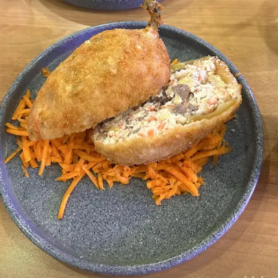 Chile caribe empanizado, relleno de tampico, queso gouda, res, pollo y philadelphia.