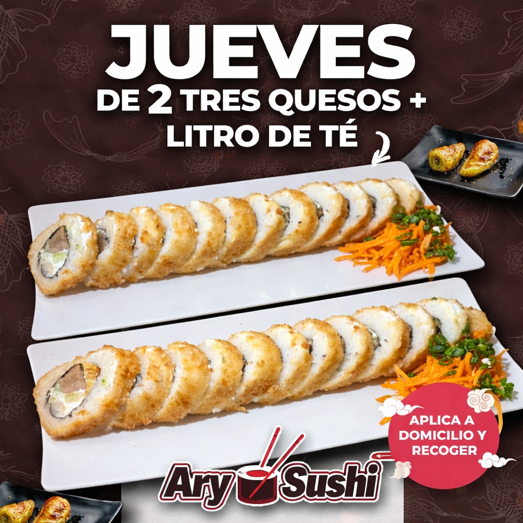 Dos rollos 3 Quesos + Te 1 Lt.