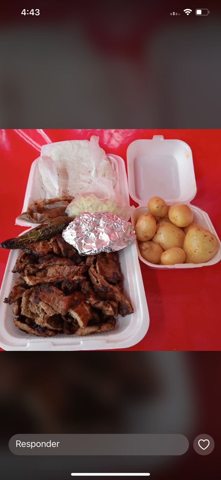 300 g De carne asada, 1/4 salsa tatemada, 10 tortilla, 1 chile toreado, cebollita.