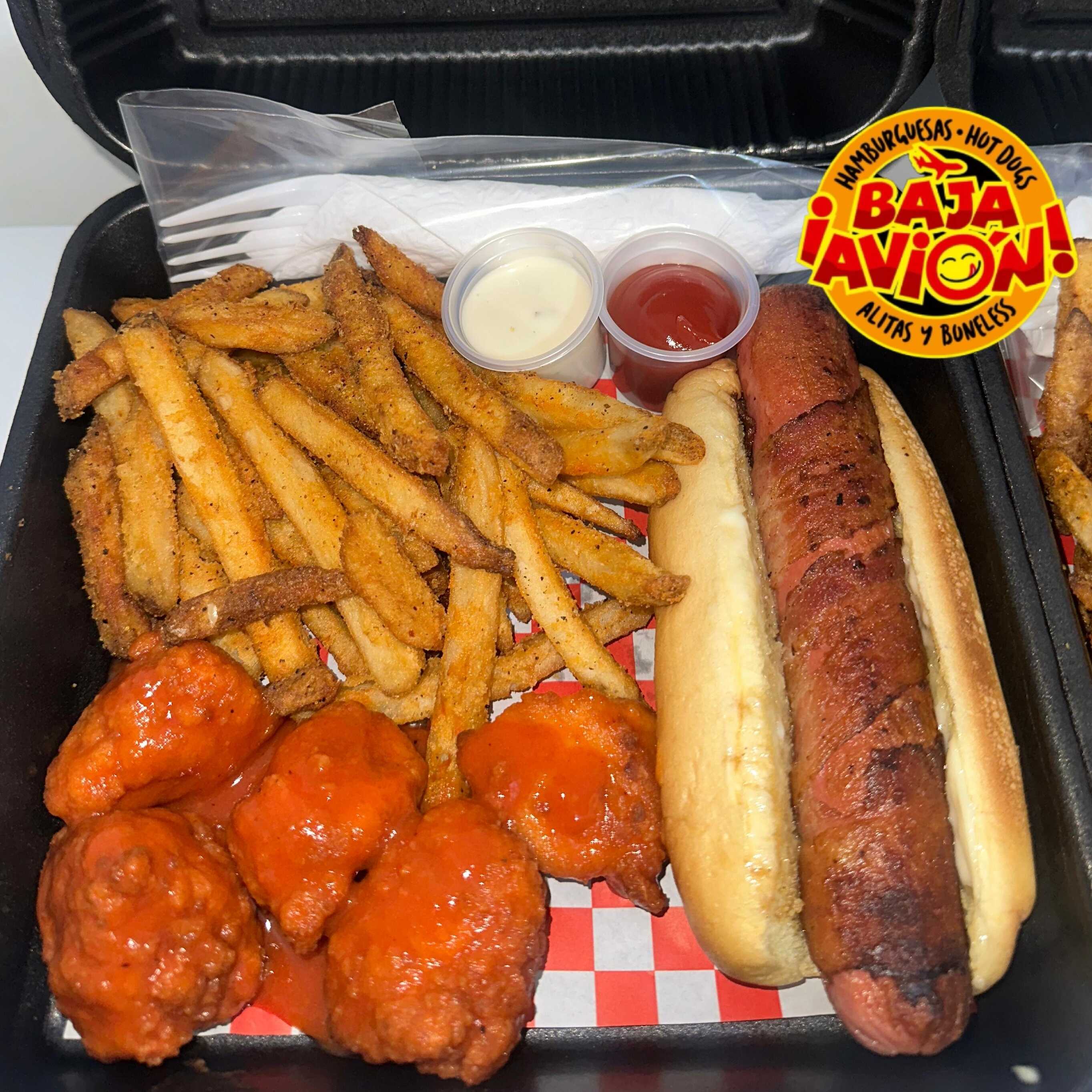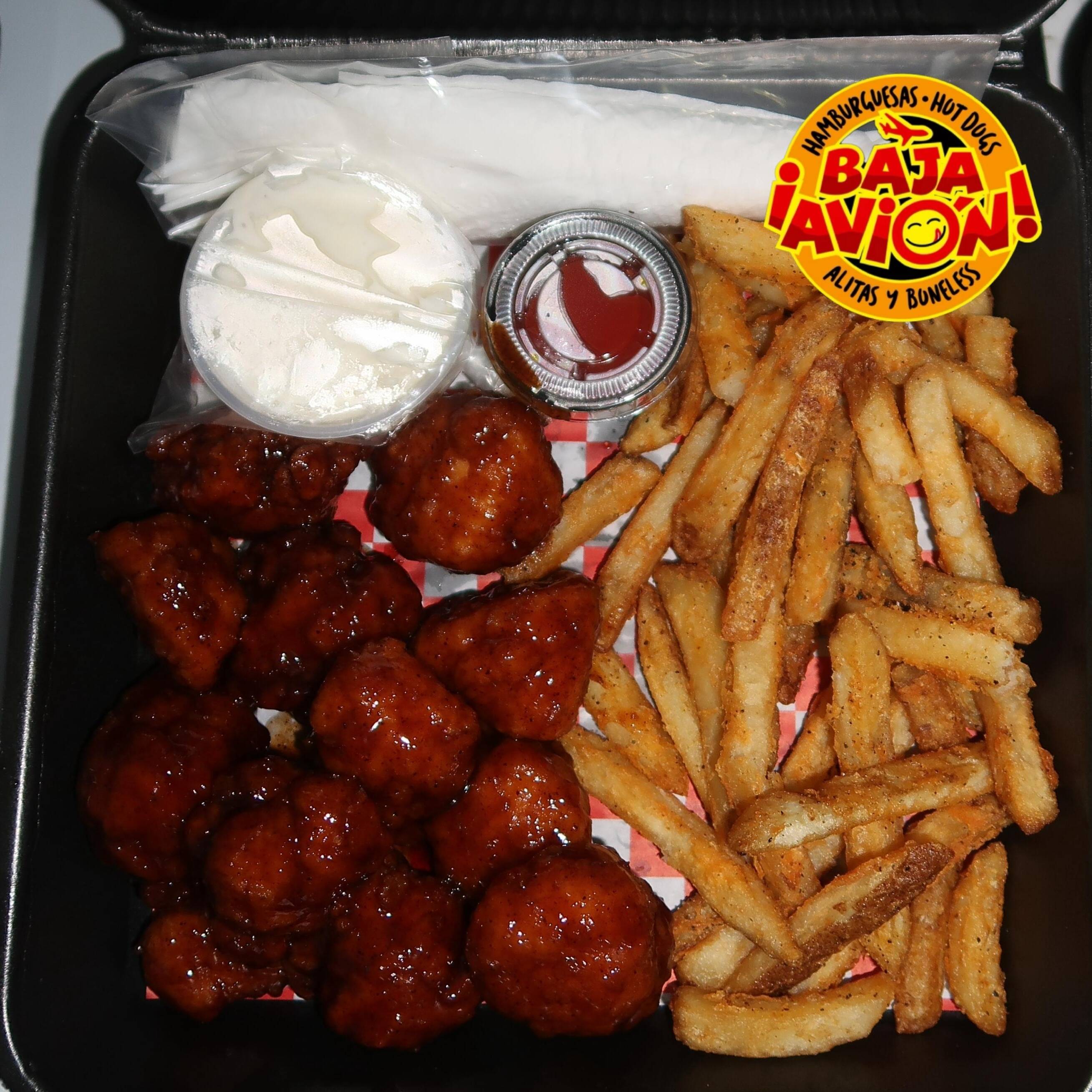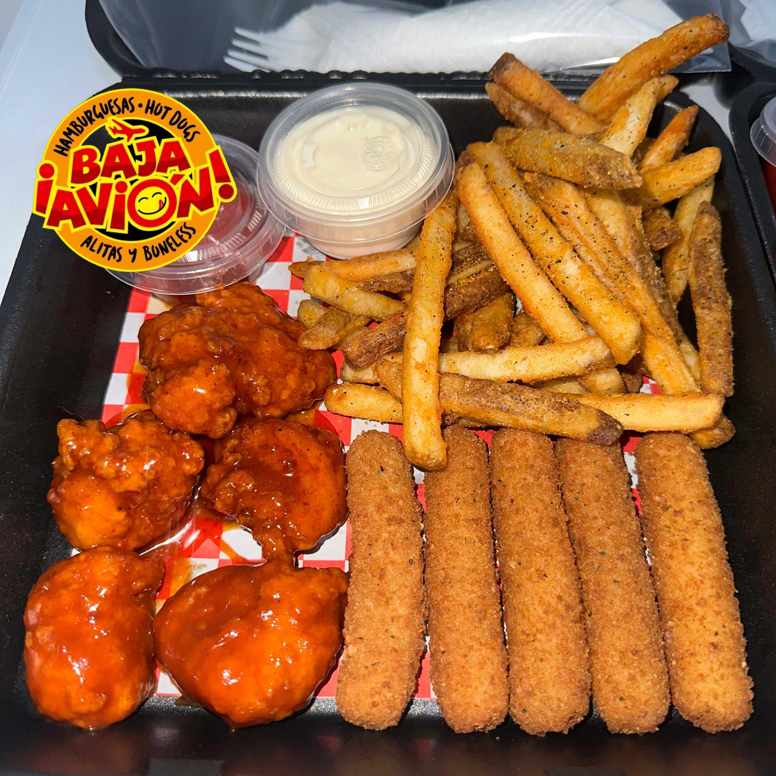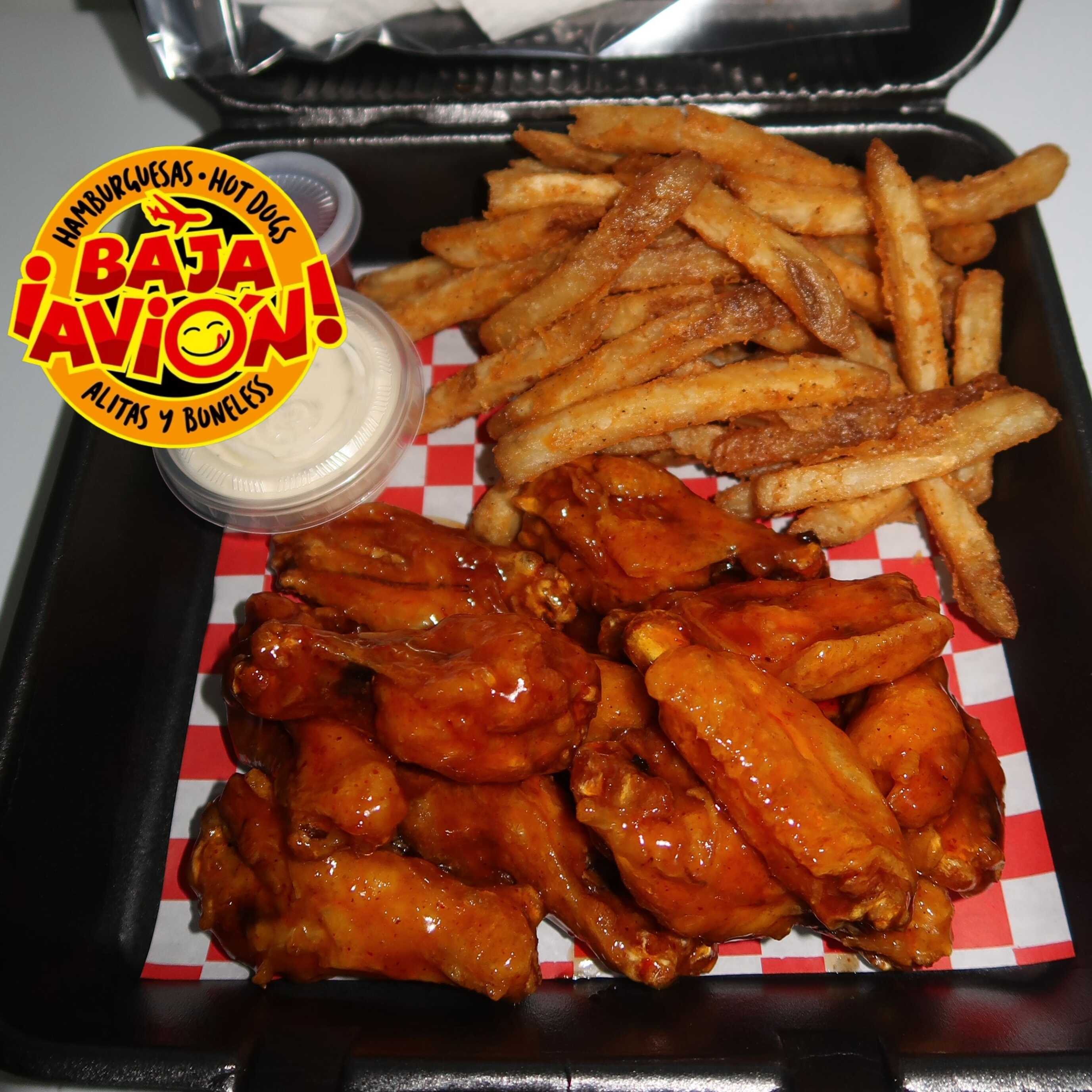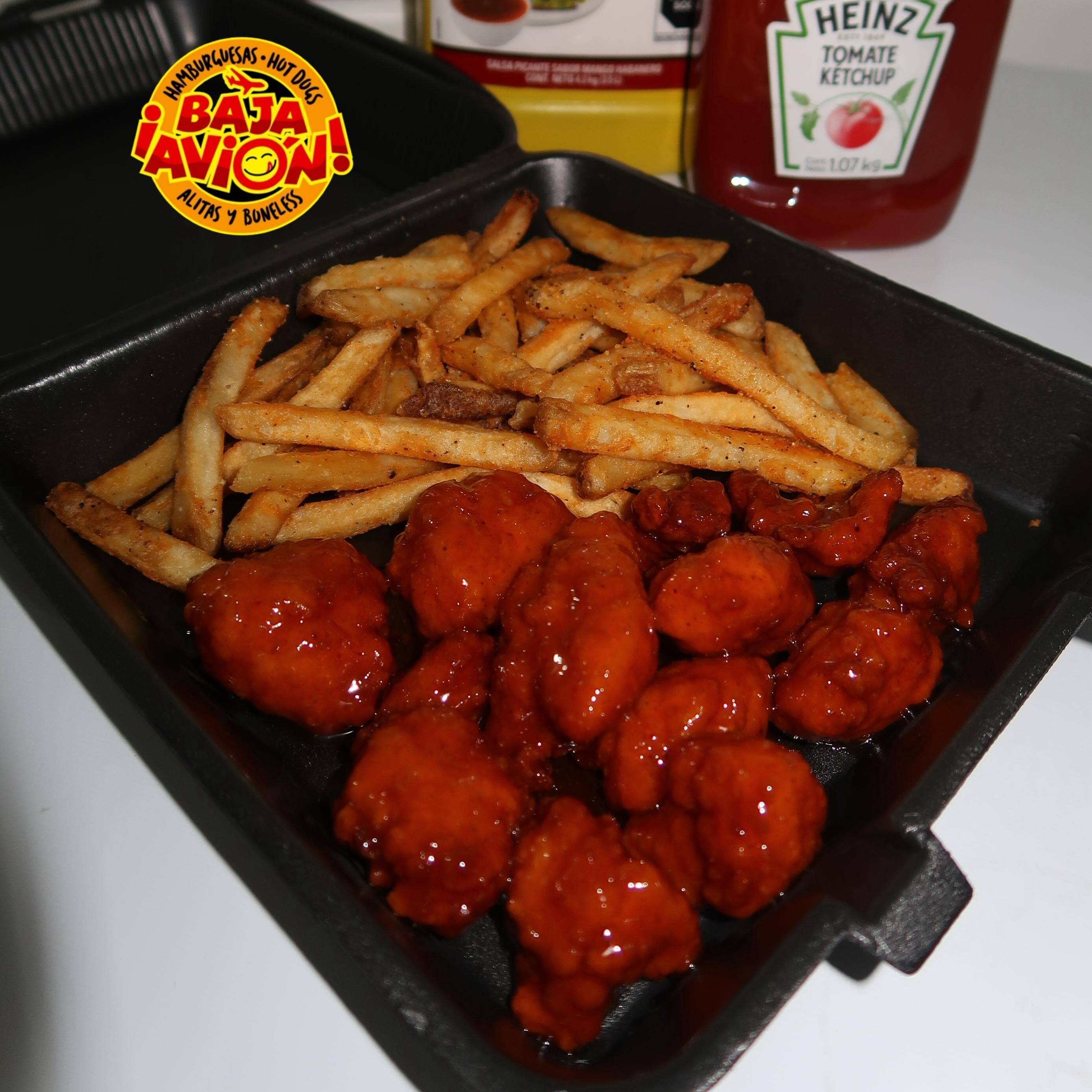 Salsas: BBQ, Bbq Hot, Bufalo, Mango habanero.