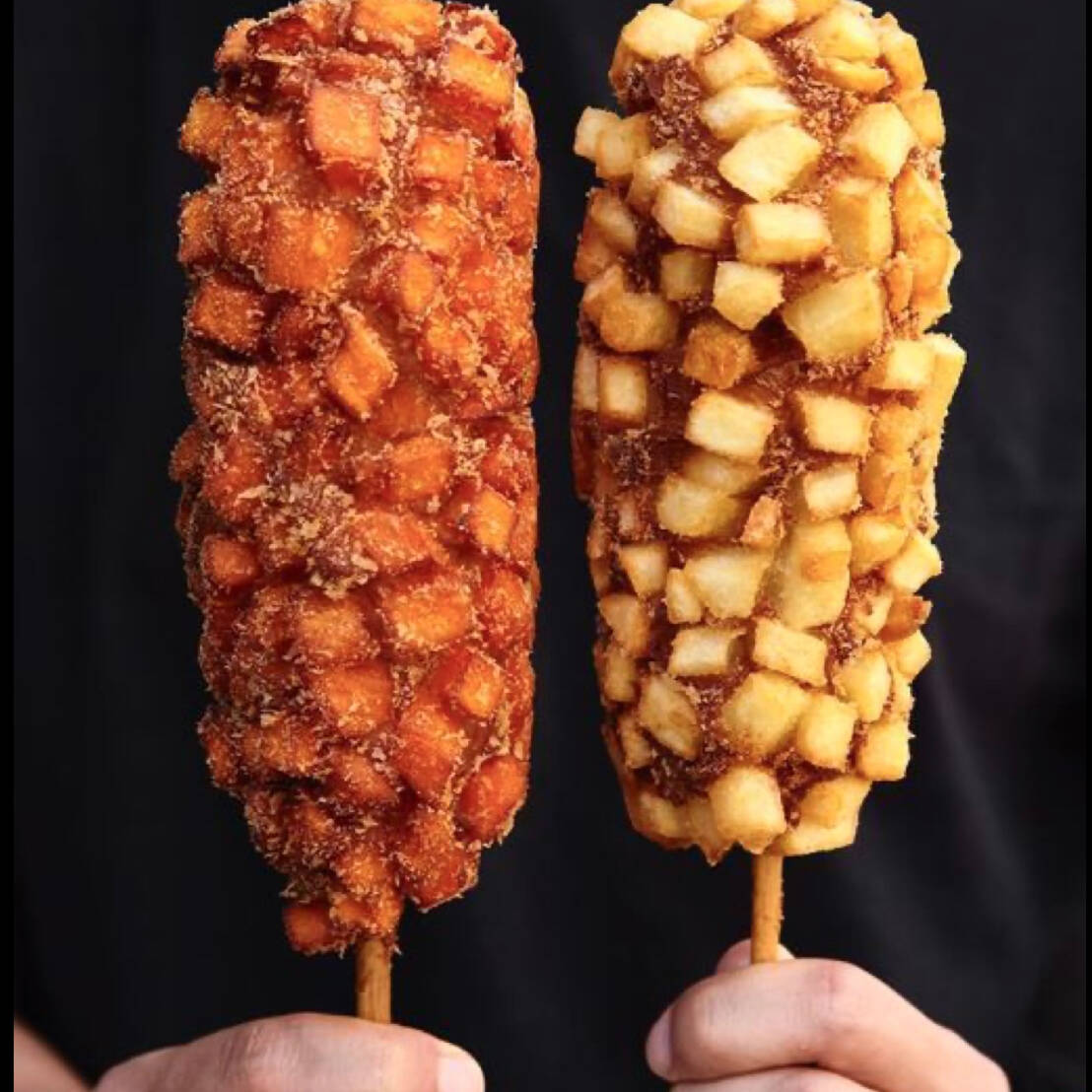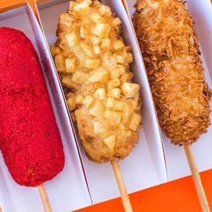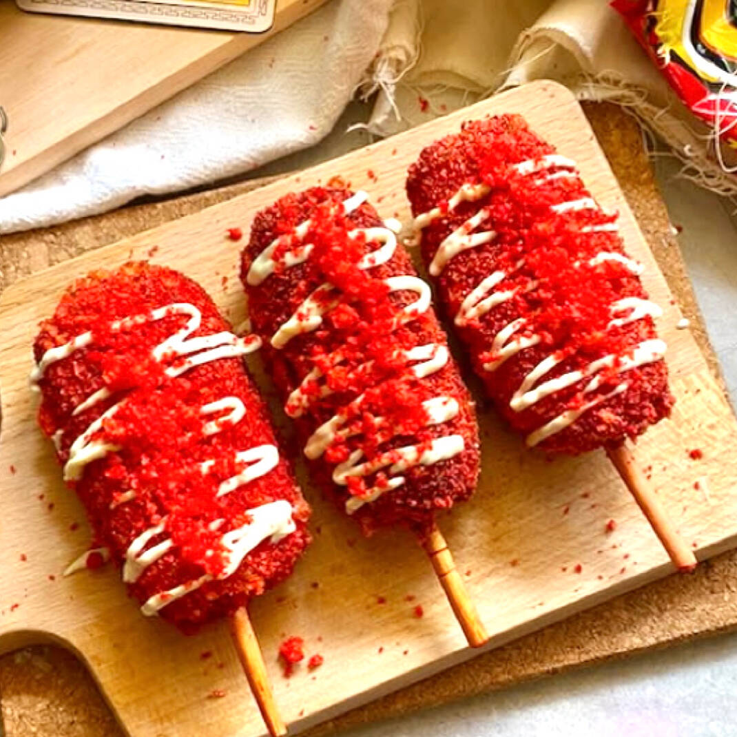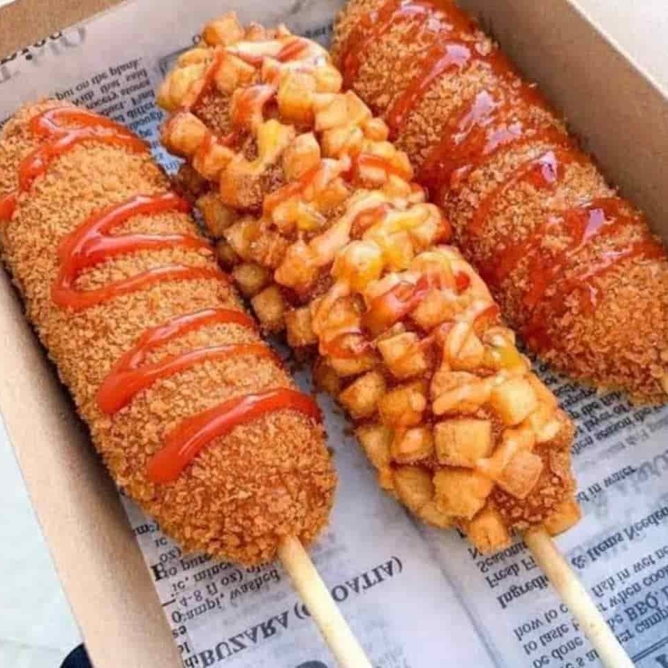 Banderilla coreana con relleno a elección con cobertura de papas