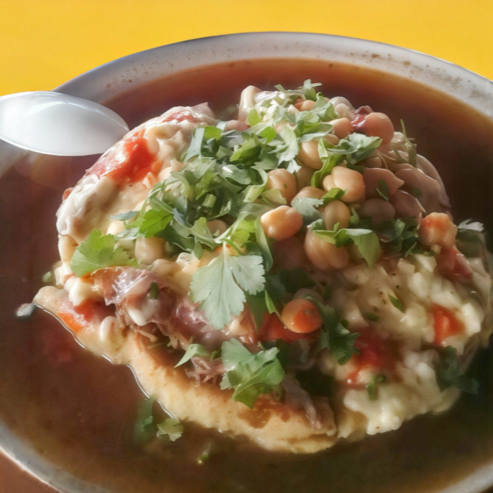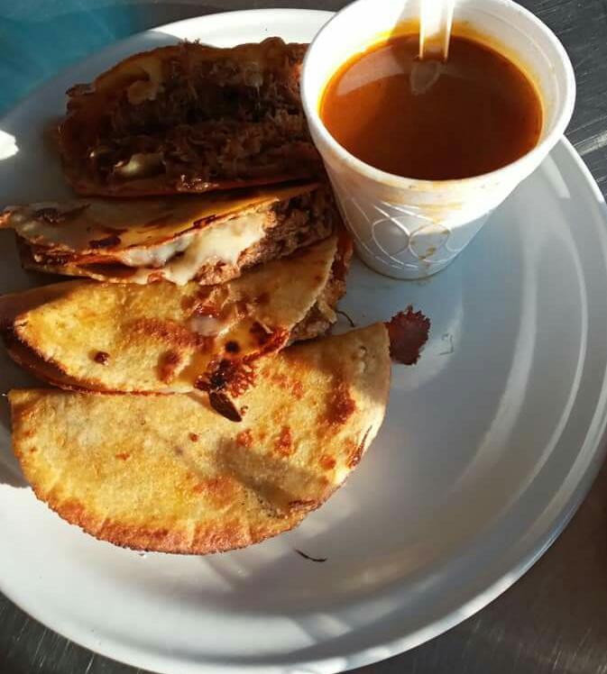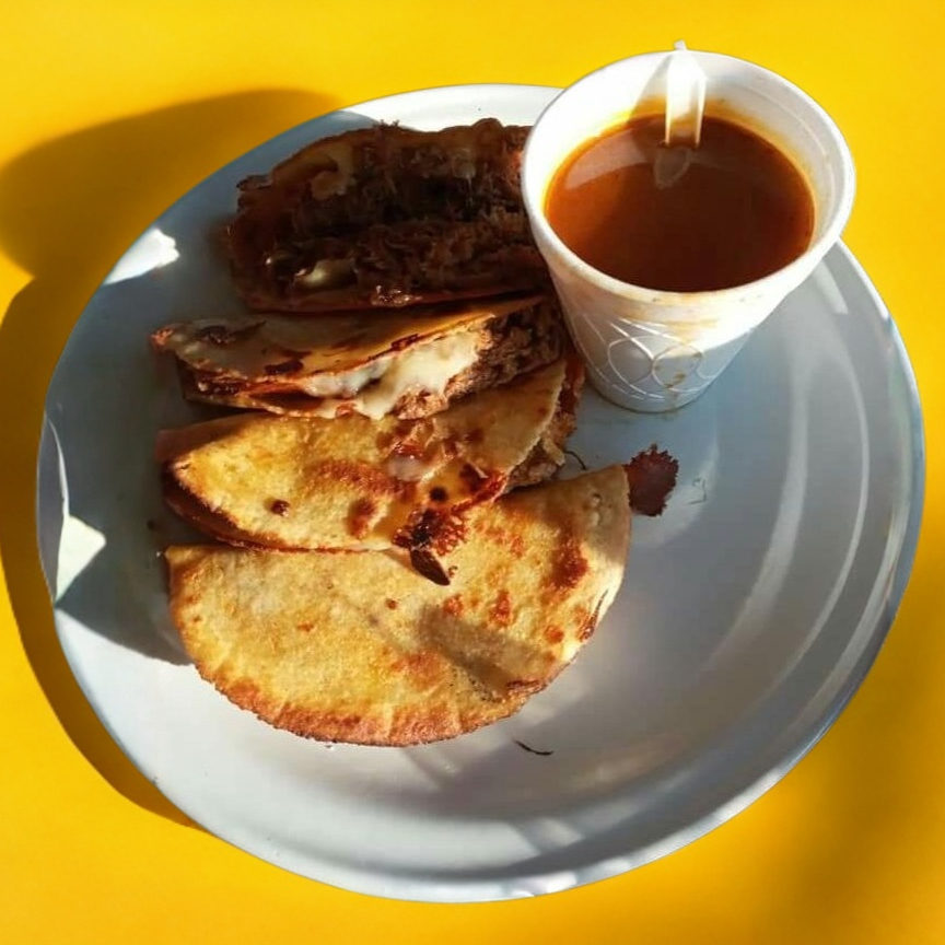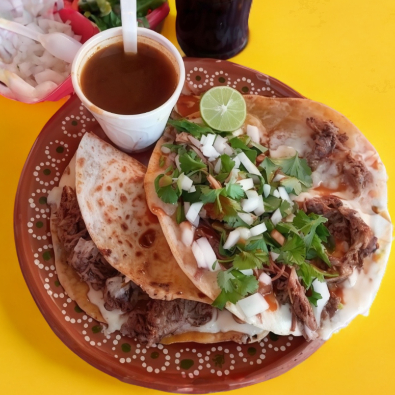 Rica torta de Birria, mas Su medio litro de consomé verdura y salsa