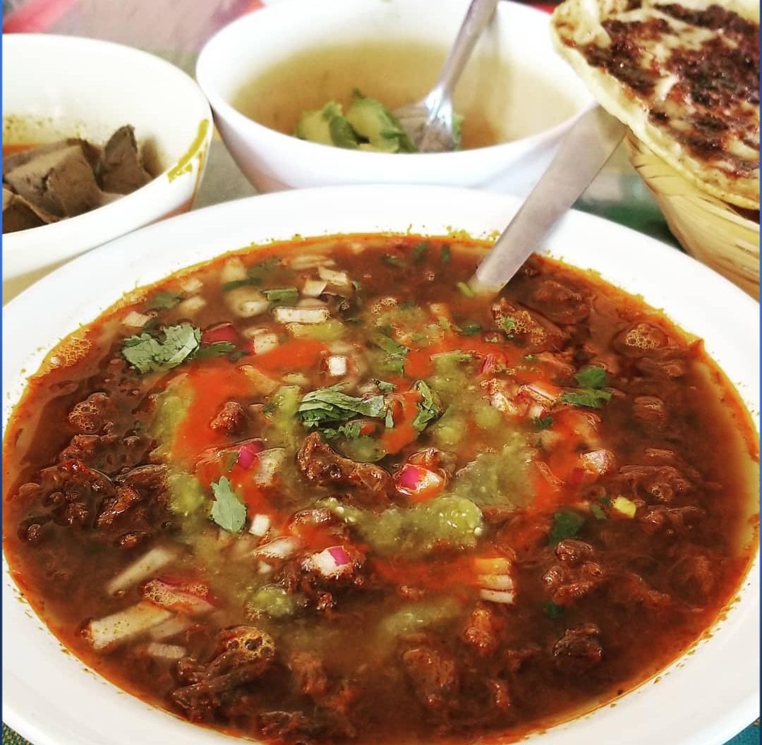 BARBACOA DE RES CON CALDO DE BARBACOA , LECHUGA CEBOLLA Y TOMATE, Y TORTILLAS DE NIXTAMAL HECHA A MANO