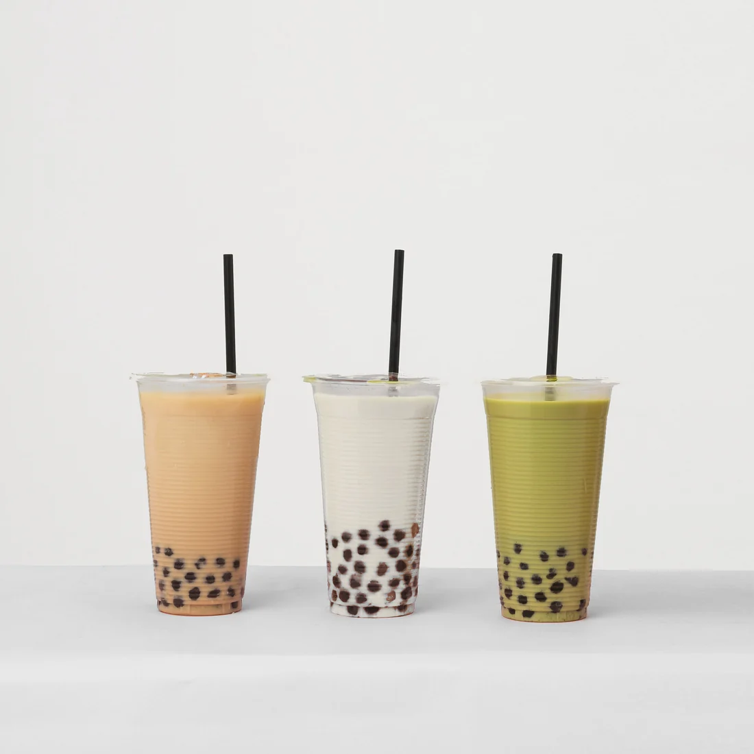 Base de leche, cubos de hielo, té Thai, vaso sellado más 1 porción de tapioca.