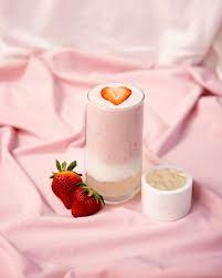 Base de leche, cubos de hielo, sabor Fresa, vaso sellado más 1 porción de tapioca.