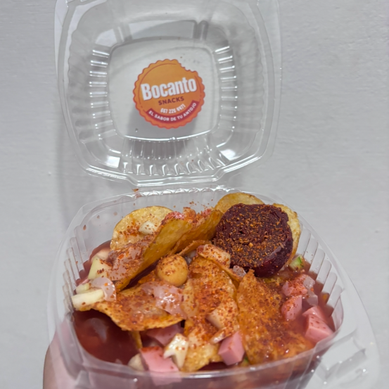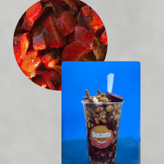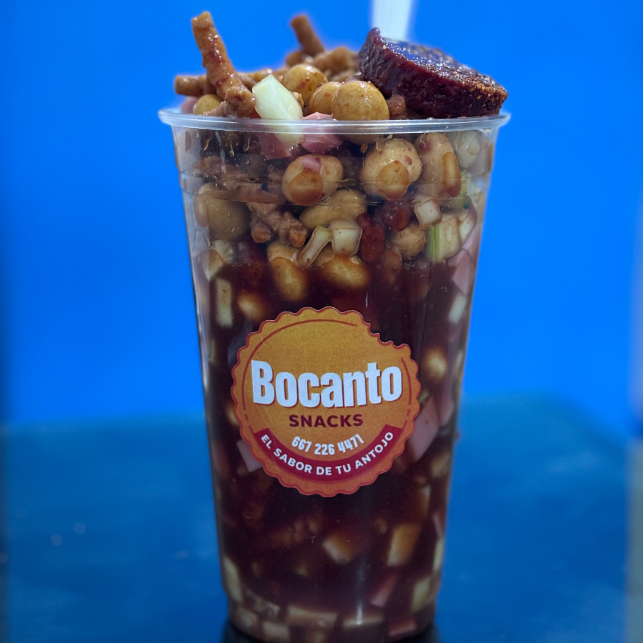 Deliciosa mezcla de pepino, salchicha, cueritos, cacahuate, realito y salsa de la casa.