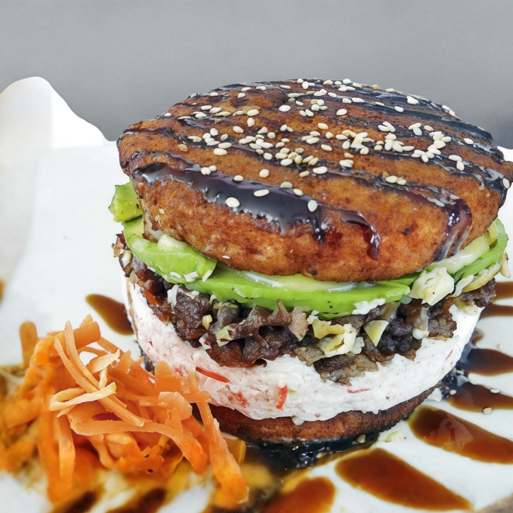 Por dentro aguacate, res, pollo y tocino, por fuera phila y chihuahua.