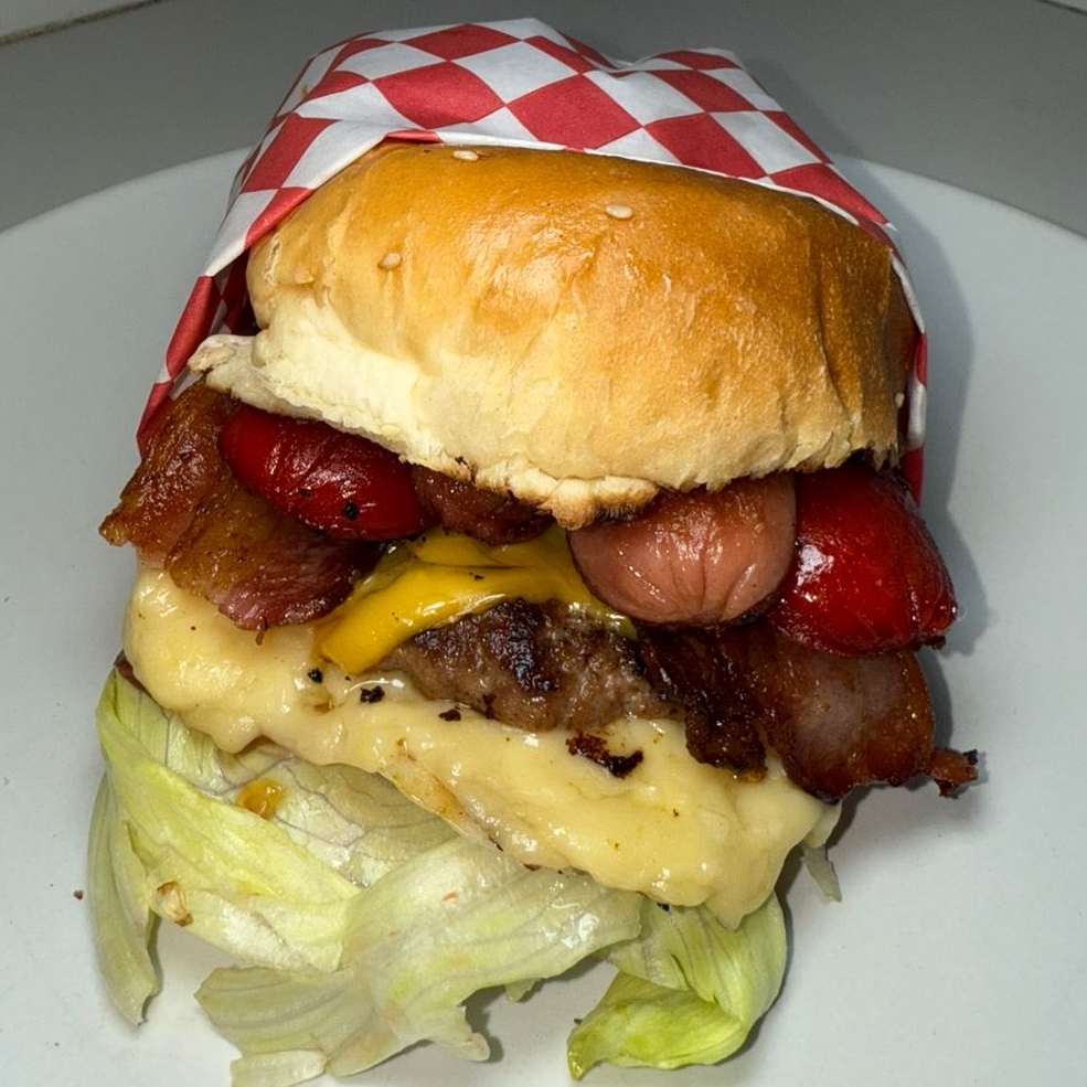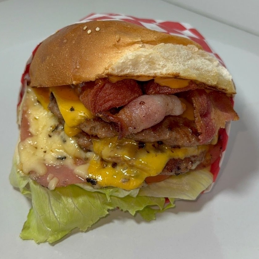 (pan casero,2 carnes,2 queso americano,jamon,queso chihuahua,salchicha,aderezo especial,lechuga,tomate,cebolla)