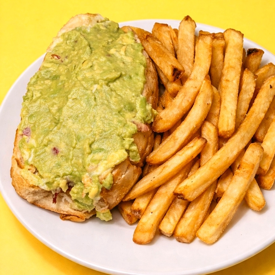 HAMBURGUESA GUACAMOLE CON PAPAS