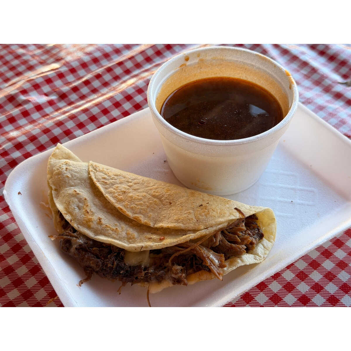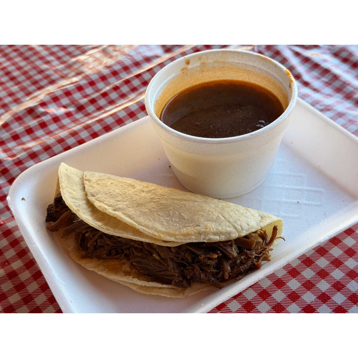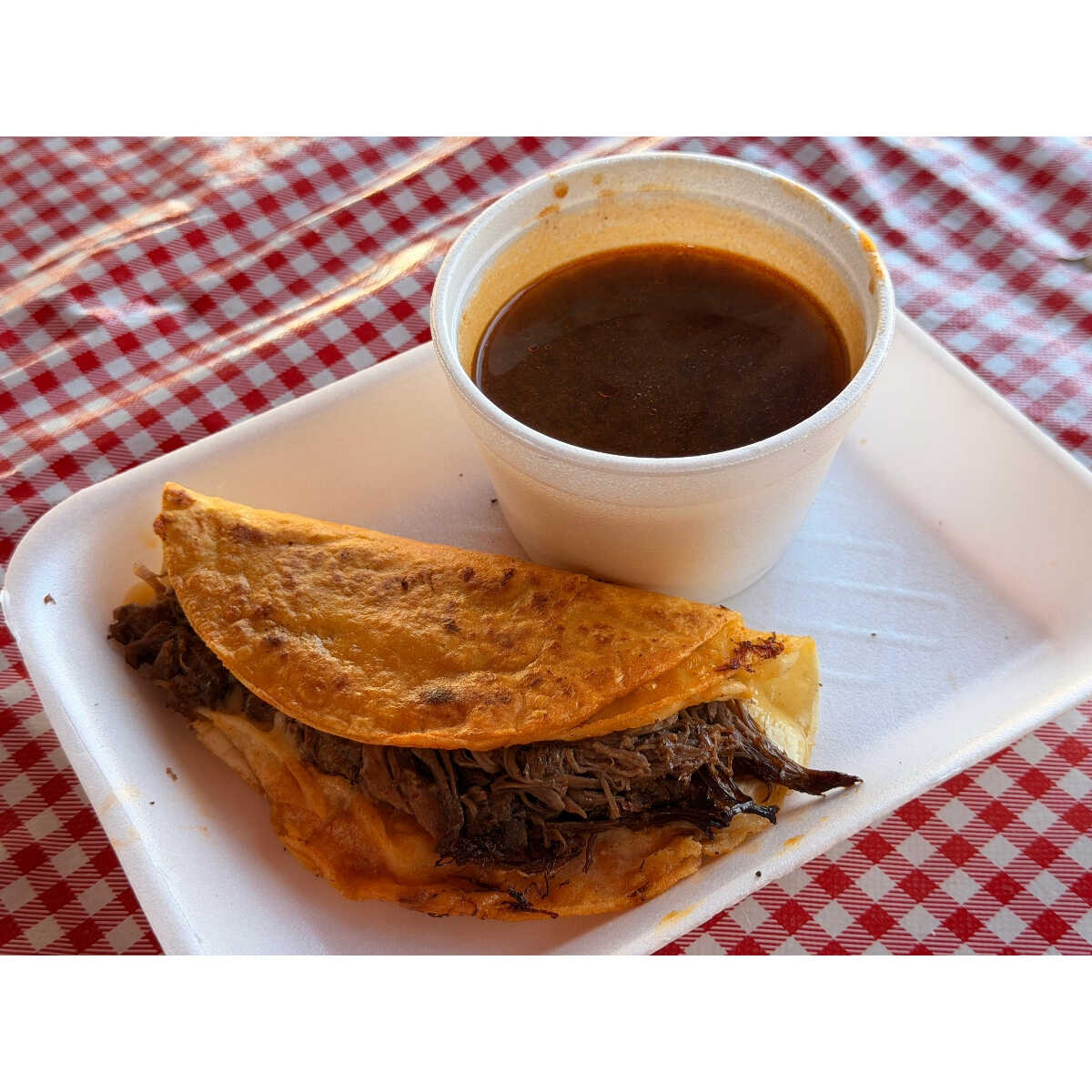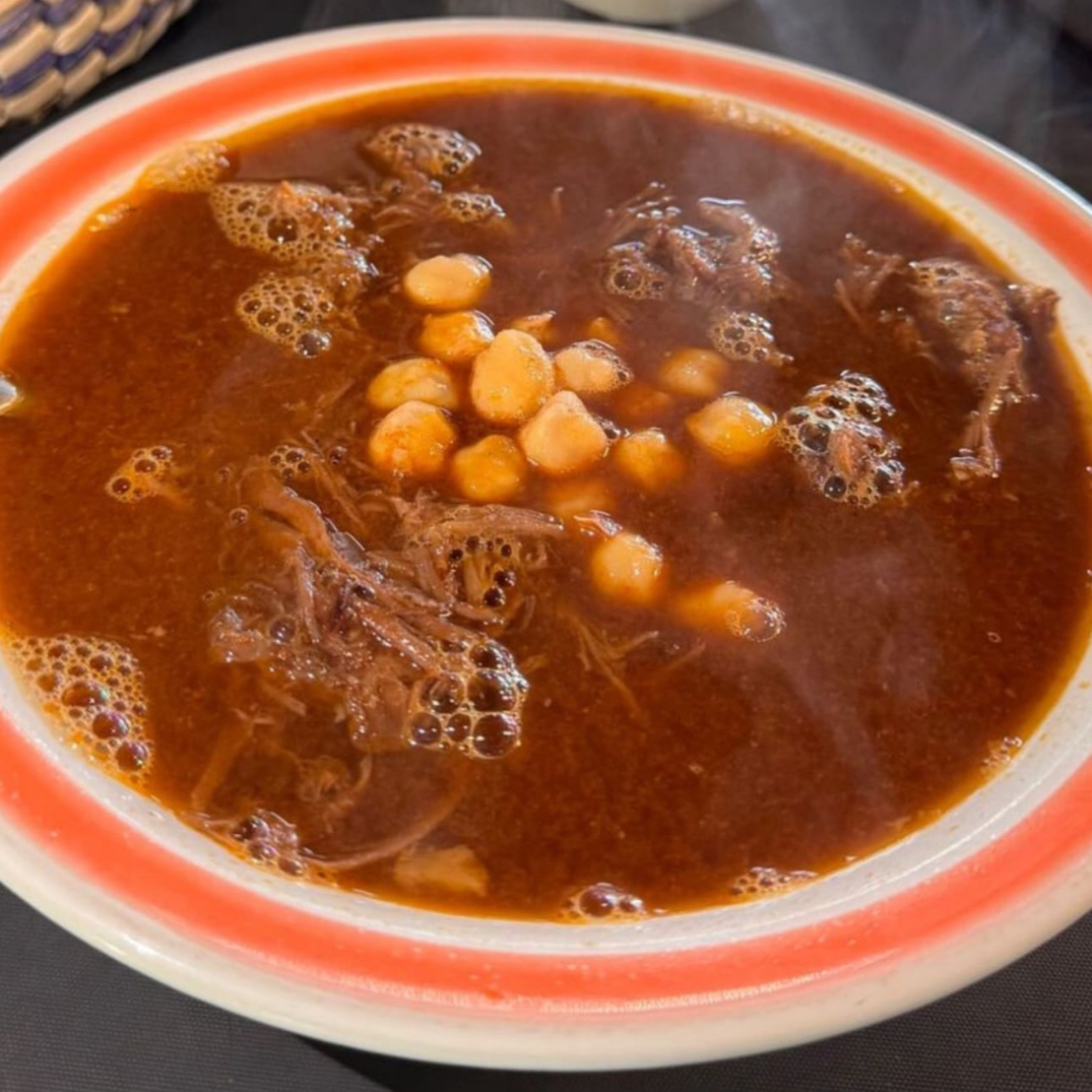 Deliciosa porción de consomé de birria.