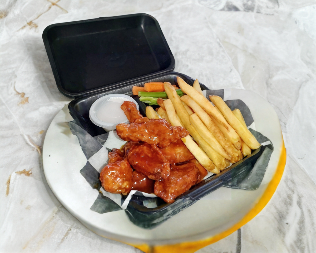 500 gramos de boneless, 4 dedos de queso, 6 aros de cebolla, 300 gramos de papas, 300 gramos de papas sazonadas, aderezos y vegetales. Ideal para 4 personas.