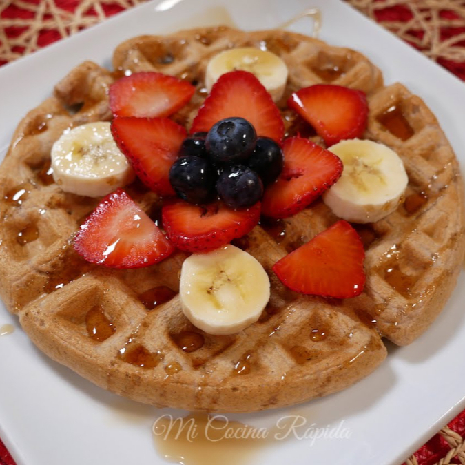 1 pieza de waffle. Coronado con fruta miel y mermelada.