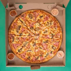 Pizza de 20 rebanadas con 1 ingrediente a elegir. incluye 2 aderezo y 2 salsa.