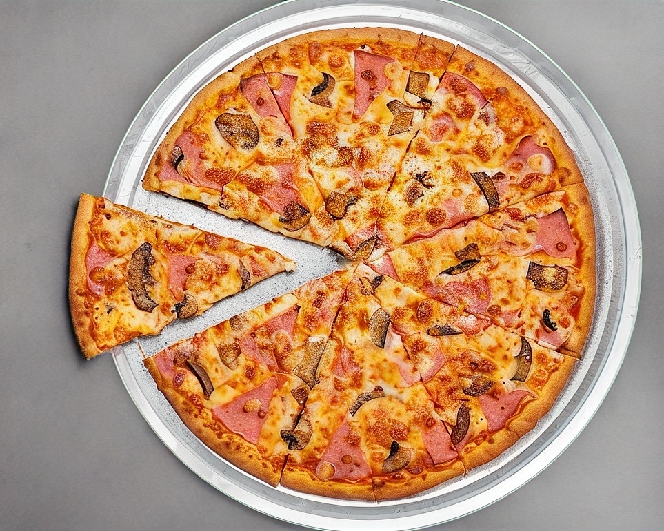 Pizza familiar de 8 rebanadas,incluye 2 aderezo y 2 salsa.