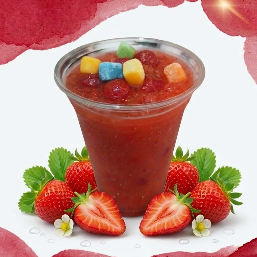 Fresa Natural, Hielo, Tajín, Miguelito y Picafresas, en vaso de 16oz