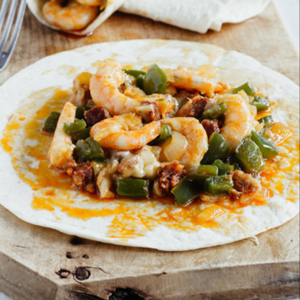 Quesadilla camaron gobernador en tortilla de harina acompañada de verdura y salsa