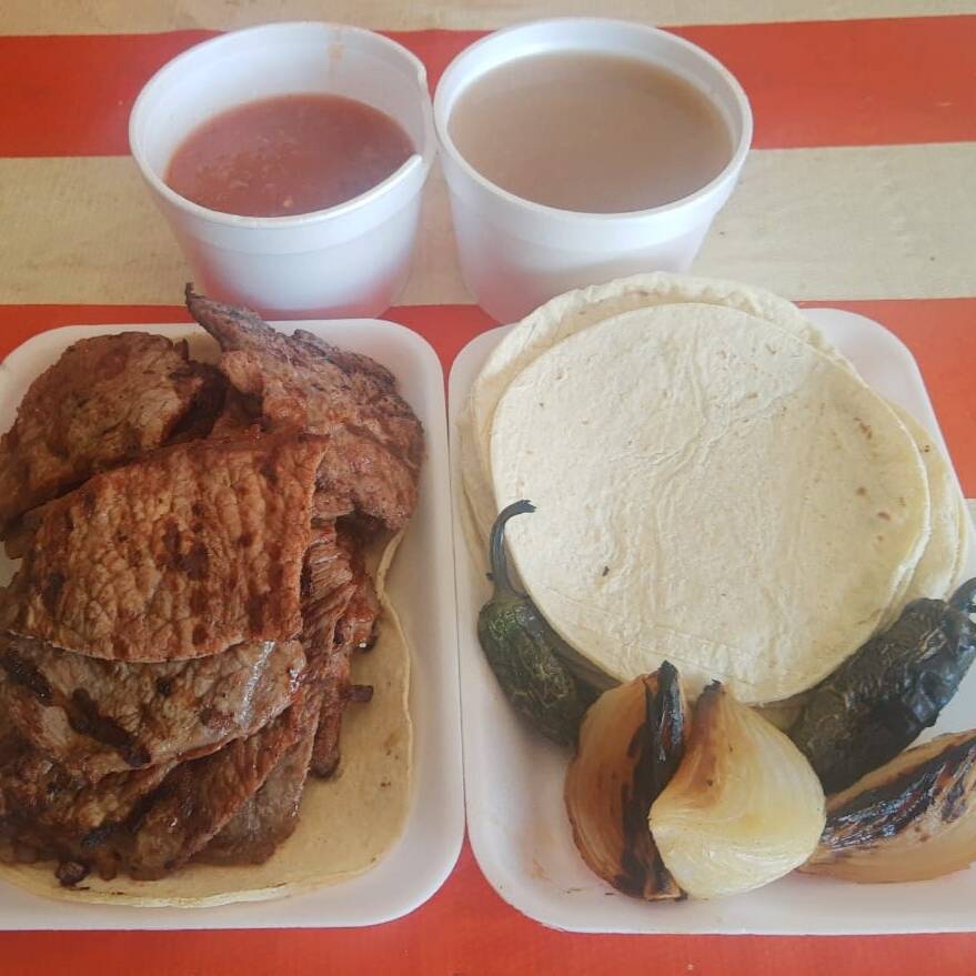 Orden para 2 Personas de Carne Asada SIRLOIN, Incluye: Tortillas, Frijol de Olla, Salsa, Cebolla Asada y Chiles Toreados.