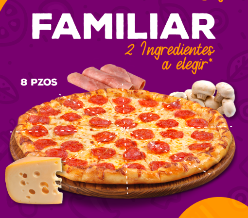 Pizza familiar de 8 pedazos grandes.