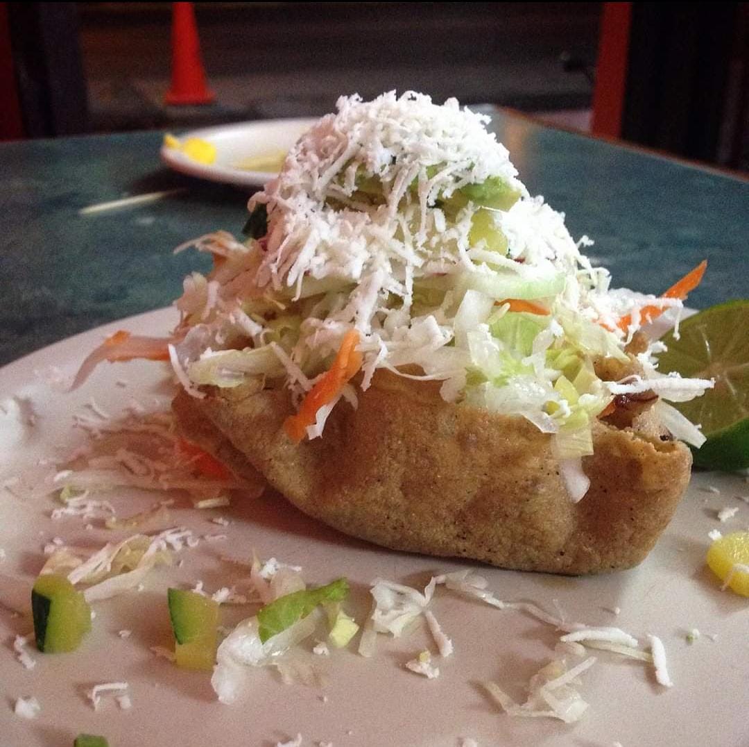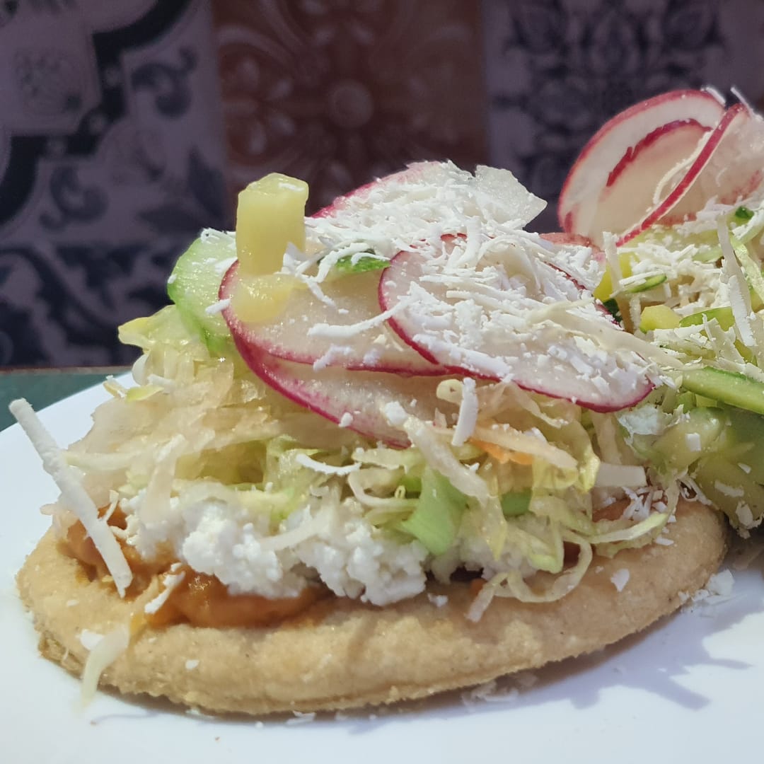 Orden de 1 gordita de requesón, acompañadas con lechuga, repollo, zanahoria, rábano, pepino, calabaza, limón y queso con caldo de res.
